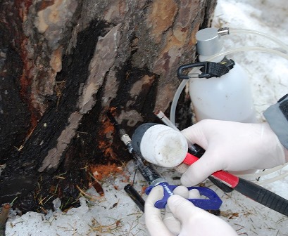 Служба СЭС по уничтожению короеда-типографа в Михайловке.